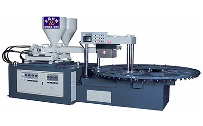 等進(jìn)料到達(dá)設(shè)定量后才有慢速鎖模動(dòng)作。鎖模停止后,執(zhí)行射料、開模動(dòng)作。若現(xiàn)在模位不使用,按自動(dòng)啟動(dòng)鍵,則圓盤運(yùn)行往下一有使用的模位,TPU鞋底機(jī)
